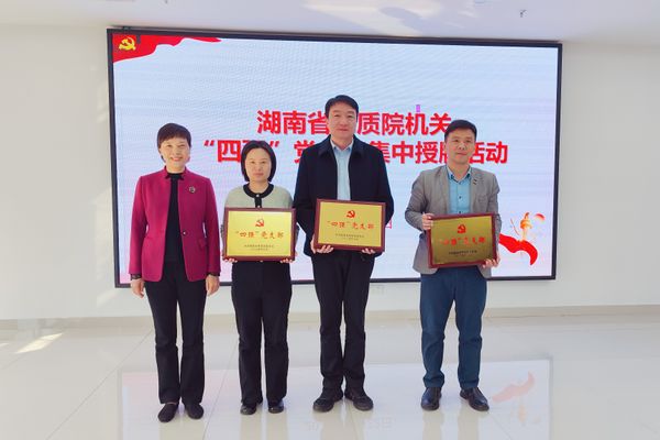 根据《中共湖南省地质院委员会关于2024年度院“四强”党支部复核和2025年度院“四强”党支部评定结果的通报》,院办公室党支部、发展规划室党支部、离退休工作部党支部复核保留2024年度院“四强”党支部称号,院财务部党支部、质量技术室党支部、自然生态室党支部评定获得2025年度院“四强”党支部。会上,6个党支部分别作交流发言。